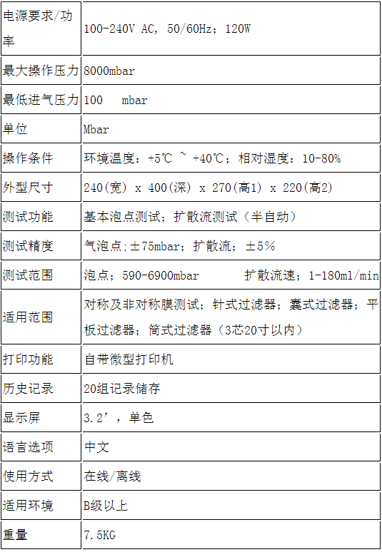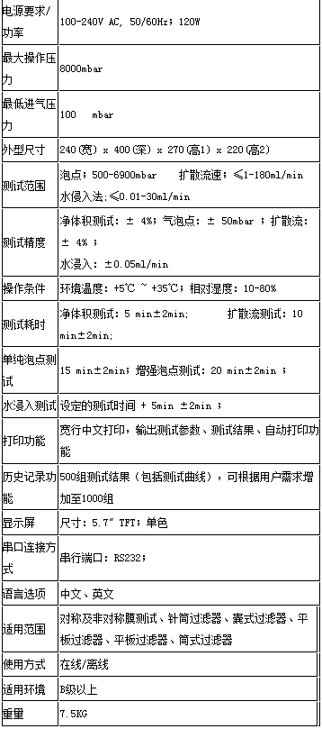 3)微电脑控制全自动检测,具有气泡点扫描、泡点检测及扩散流和保压法等多种测试功能;